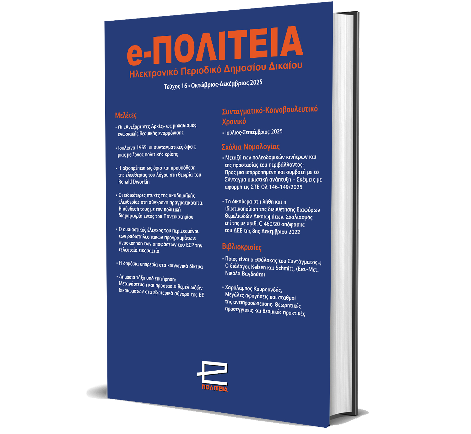 Διαβάστε το δέκατο έκτο τεύχος (Τεύχος 16, Οκτώβριος – Δεκέμβριος 2025) του ηλεκτρονικού περιοδικού Δημοσίου Δικαίου ελεύθερης πρόσβασης e-ΠΟΛΙΤΕΙΑ