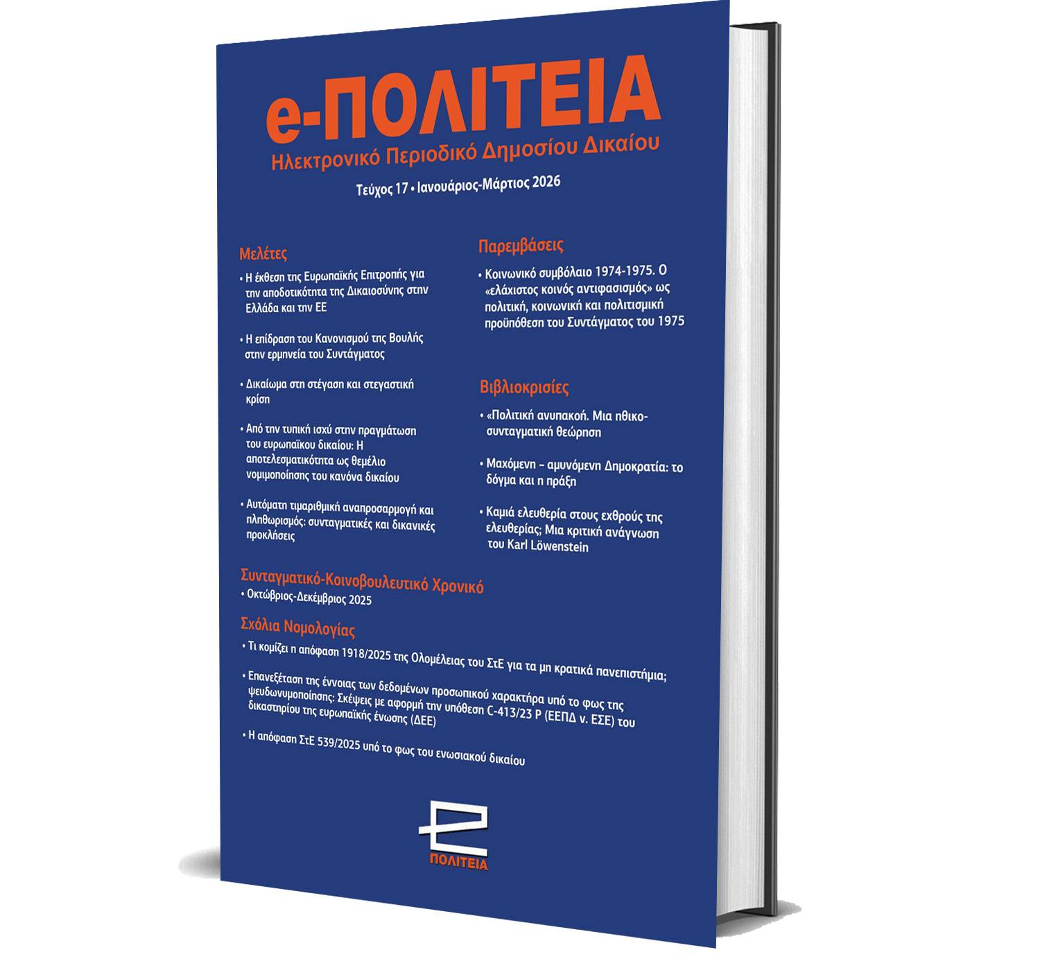 Διαβάστε το δέκατο έβδομο τεύχος (Τεύχος 17, Ιανουάριος – Μάρτιος 2026) του ηλεκτρονικού περιοδικού Δημοσίου Δικαίου ελεύθερης πρόσβασης e-ΠΟΛΙΤΕΙΑ