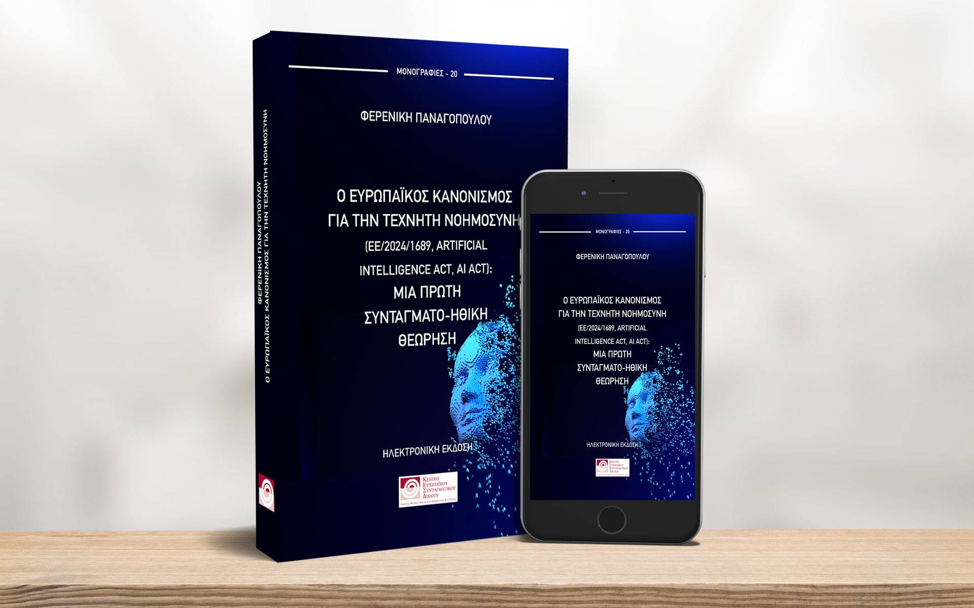 Το Κέντρο Ευρωπαϊκού Συνταγματικού Δικαίου – Ίδρυμα Θεμιστοκλή και Δημήτρη Τσάτσου και το e-ΠΟΛΙΤΕΙΑ παρουσιάζουν, σε μορφή e-book ελεύθερης πρόσβασης, τη μονογραφία της Επίκουρης Καθηγήτριας Συνταγματικού Δικαίου στο Πάντειο Πανεπιστήμιο και Δικηγόρου Φερενίκης Παναγοπούλου, με τίτλο «Ο Ευρωπαϊκός Κανονισμός για την Τεχνητή Νοημοσύνη (ΕΕ/2024/1689, Artificial Intelligence Act, ΑI Act): Μια πρώτη συνταγματο-ηθική θεώρηση».