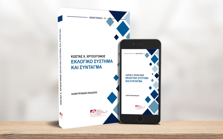 Το Κέντρο Ευρωπαϊκού Συνταγματικού Δικαίου – Ίδρυμα Θεμιστοκλή και Δημήτρη Τσάτσου και το e-ΠΟΛΙΤΕΙΑ επανεκδίδουν, σε μορφή e-book ελεύθερης πρόσβασης με νέο πρόλογο, τη μονογραφία του Καθηγητή Συνταγματικού Δικαίου στο Αριστοτέλειο Πανεπιστήμιο Θεσσαλονίκης Κώστα Χρυσόγονου, με τίτλο «Εκλογικό σύστημα και Σύνταγμα».