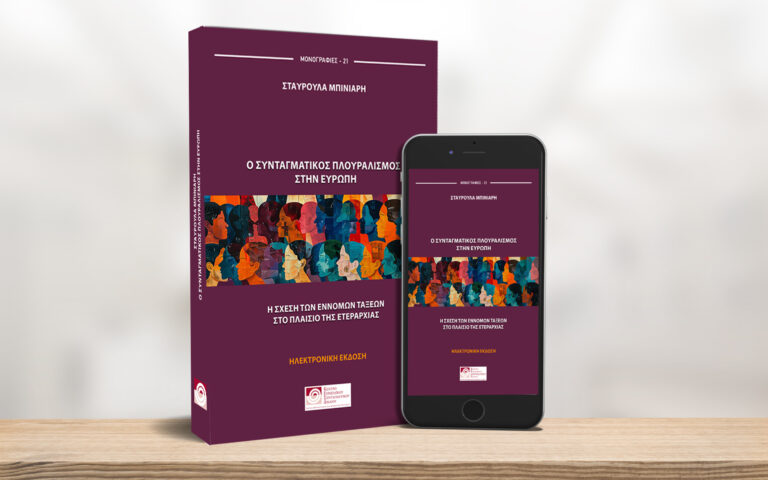 Το Κέντρο Ευρωπαϊκού Συνταγματικού Δικαίου – Ίδρυμα Θεμιστοκλή και Δημήτρη Τσάτσου και το e-ΠΟΛΙΤΕΙΑ παρουσιάζουν, σε μορφή e-book ελεύθερης πρόσβασης, τη μονογραφία της Υποψήφιας Δόκιμης Εισηγήτριας στο Συμβούλιο της Επικρατείας Σταυρούλας Μπινιάρη, με τίτλο «Ο συνταγματικός πλουραλισμός στην Ευρώπη»